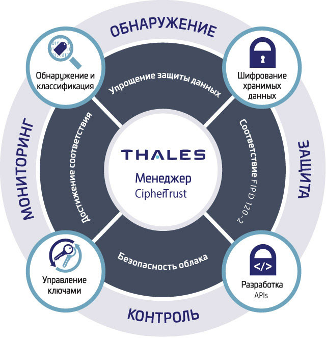Этот целостный подход основан на опыте работы Thales с сотнями корпоративных директоров по информационным технологиям, CDO, ИТ-директоров и архитекторов безопасности и защиты данных, а также на передовых методах, регулируемых многочисленными нормативными актами и отраслевыми стандартами. Чтобы принять этот подход к безопасности данных, организациям необходимо делать следующее: обнаруживать и классифицировать конфиденциальные данные, защищать конфиденциальные данные и контролировать ключи шифрования.