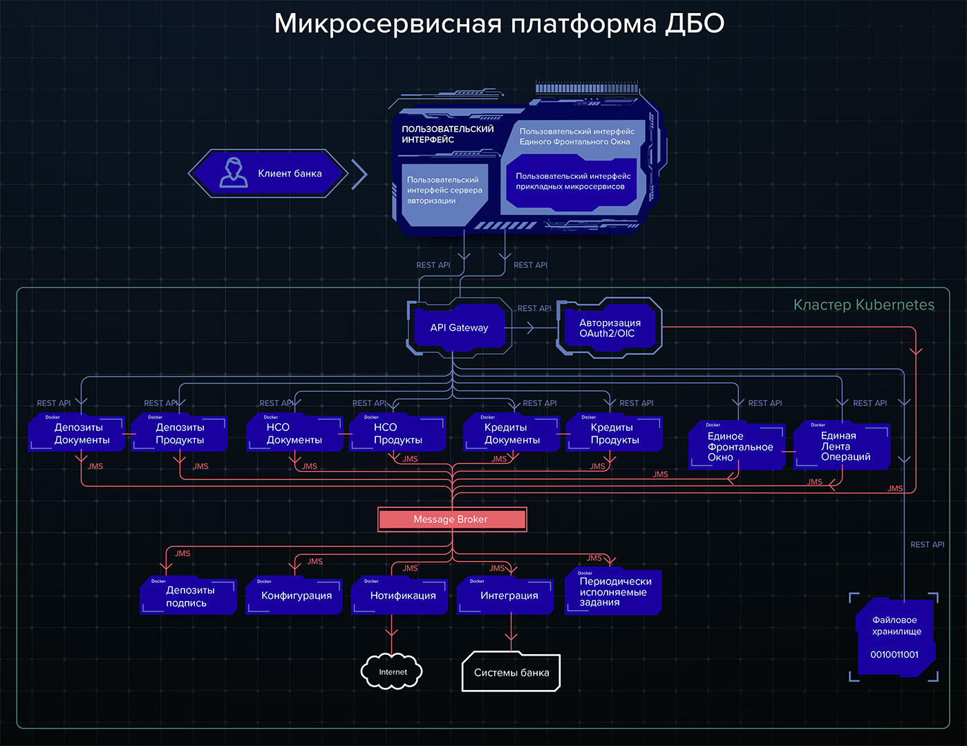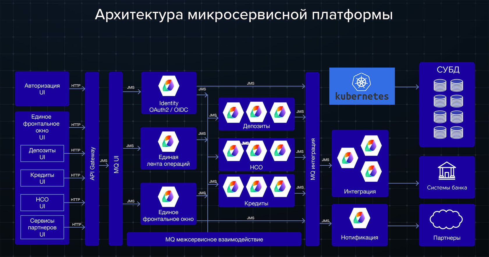 В качестве прикладных решений на ее базе в данный момент мы реализуем микросервисы кредитов и депозитов.