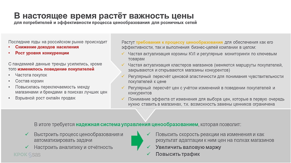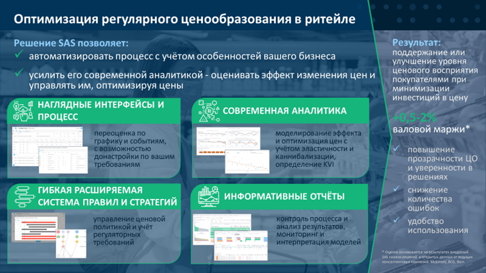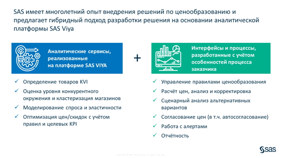 Ориентируясь на это, мы в SAS сфокусировались на предложении аналитических сервисов, которые позволяют закрыть как отдельные шаги регулярного ценообразования, так и весь процесс целиком.