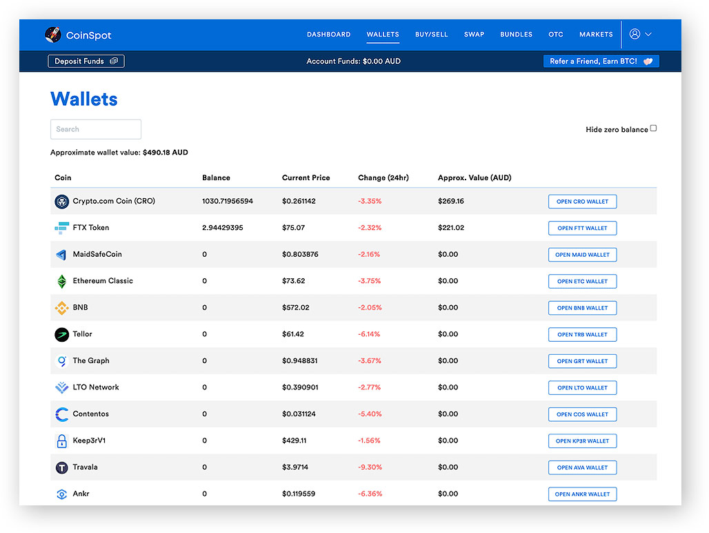 Различные типы криптовалютных кошельков Онлайн-кошельки Для многих людей их первый крипто-кошелек — это онлайн-кошелек, поскольку большинство криптовалютных бирж предоставляют его вам при первой покупке. Например, если вы зарегистрируетесь на CoinSpot, лучшей криптобирже Австралии, и купите биткоин на 100 долларов, ваш биткоин будет храниться в онлайн-кошельке на бирже CoinSpot. Оттуда вы можете продать его, сохранить или перевести на другой кошелек. Поскольку ваш кошелек находится в сети, ваши средства могут быть скомпрометированы, если кто-то взломает вашу учетную запись CoinSpot или если будет взломана криптовалютная биржа (в данном случае CoinSpot).